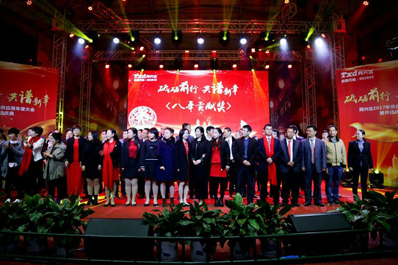 供應(yīng)商大會(huì)上,公司董事長(zhǎng)萬(wàn)鋒先生及公司高管隆曉燕女士等人發(fā)表致辭,全面地介紹了同興達(dá)公司過(guò)去所取得的成長(zhǎng)與成就和對(duì)市場(chǎng)的分析及對(duì)未來(lái)的雄心壯志!為答謝眾多合作伙伴過(guò)去一年對(duì)公司的全面支持,同興達(dá)向部分優(yōu)秀合作伙伴頒發(fā)了榮譽(yù)獎(jiǎng)杯,包括鉑金品質(zhì)獎(jiǎng)、風(fēng)雨同舟獎(jiǎng)、合作支持獎(jiǎng)、優(yōu)秀供應(yīng)商和優(yōu)秀服務(wù)商等49個(gè)榮譽(yù),加深了與供應(yīng)商的友誼,更凸顯出我們對(duì)合作供應(yīng)商的珍惜與信任。祝愿在新的一年里,還能與合作供應(yīng)商一起砥礪前行,共譜新章。